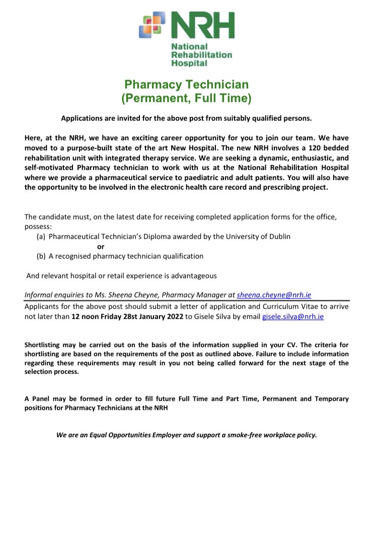 Hospital Pharmacy Technician Jobs Dublin Jamal Adamson